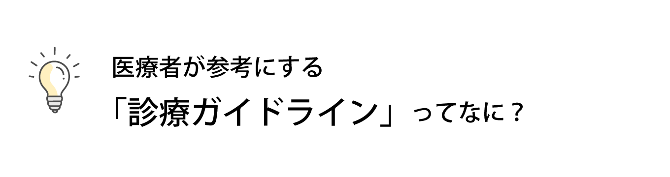 情報の根拠を確認するには、医療者向けの「診療ガイドライン」も参考になります。